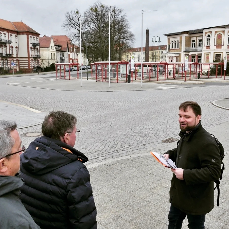 Rundgang im Zentrum oder im Stadtgebiet per Fahrrad oder Auto.