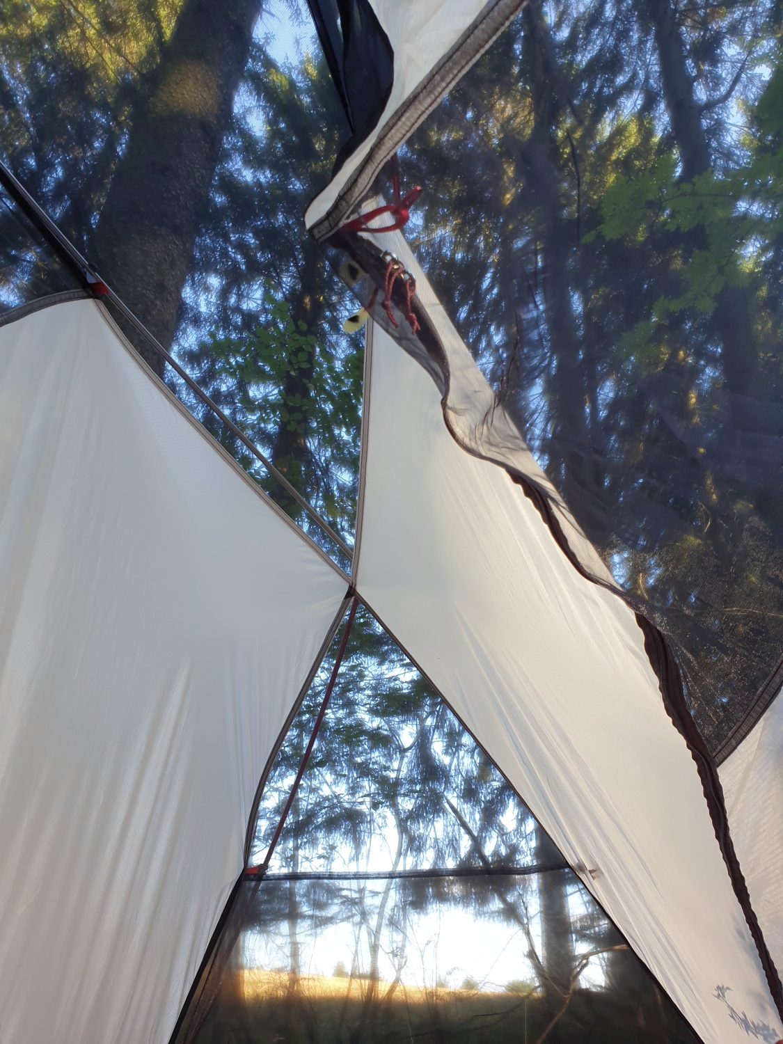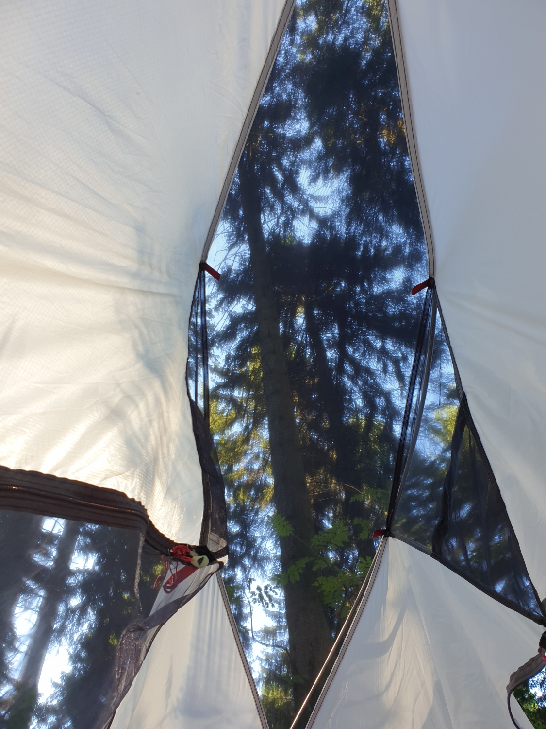 Ein Highlight dieses Zeltes ist, dass man einen wunderbaren Blick aus dem Zelt heraus hat, wenn man das Überzelt weglässt. Das ist nämlich nicht unbedingt notwendig, sondern nur bei Regen bzw. als Insekten, Sicht- oder Windschutz gedacht. In klaren Nächten lassen Panorama-Dach und -Seiten so einen herrlichen Blick in Himmel und Natur zu, ohne auf Wind- und Insektenschutz zu verzichten.